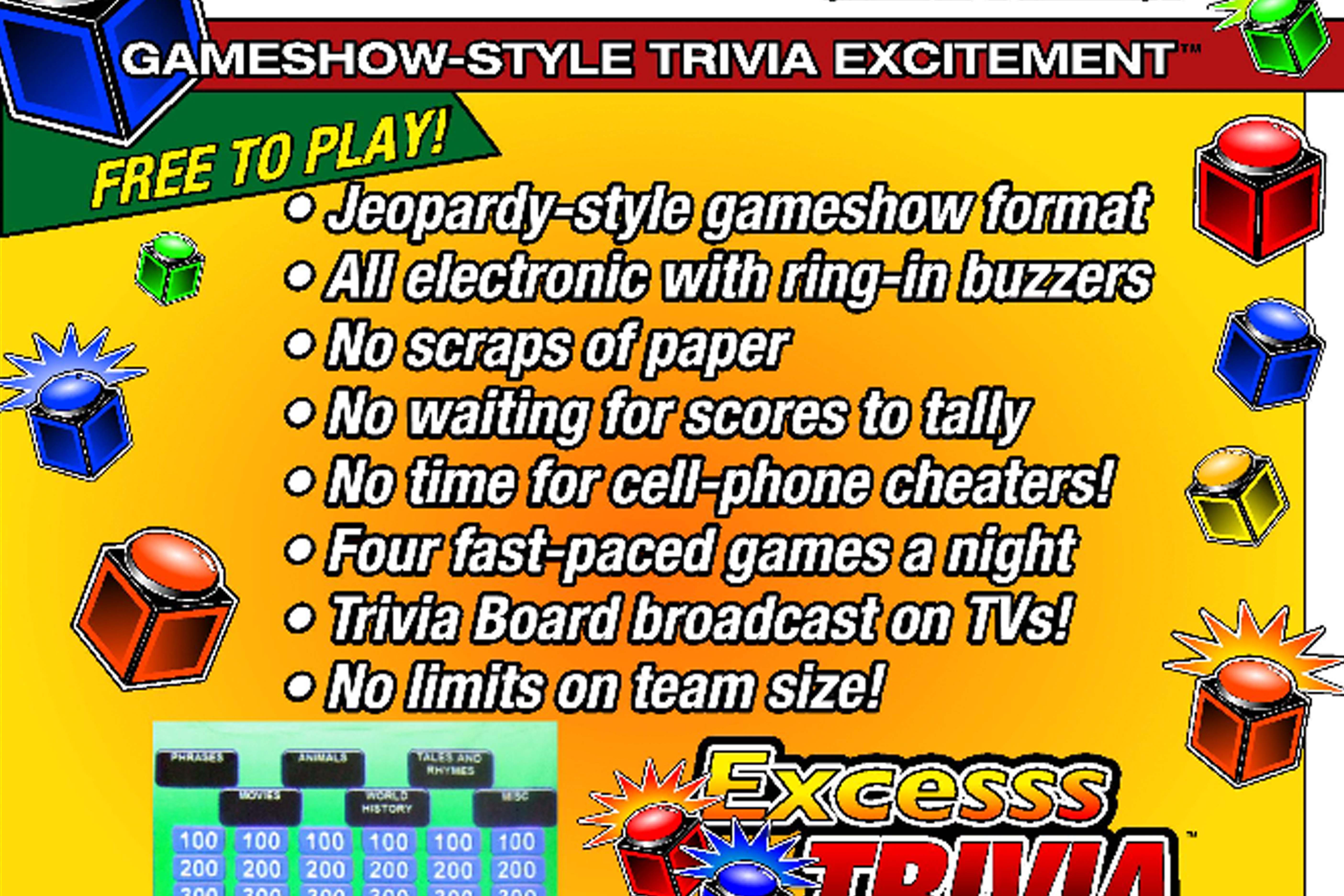 Learn how easy it is to bring Excesss Trivia to your bar, restaurant or other venue. We also do special events, corporate functions, and private parties.